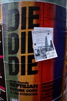 plakat za koncert NZ banda Die Die Die (in čez zalepljen letak za Magic Mushroom Party)